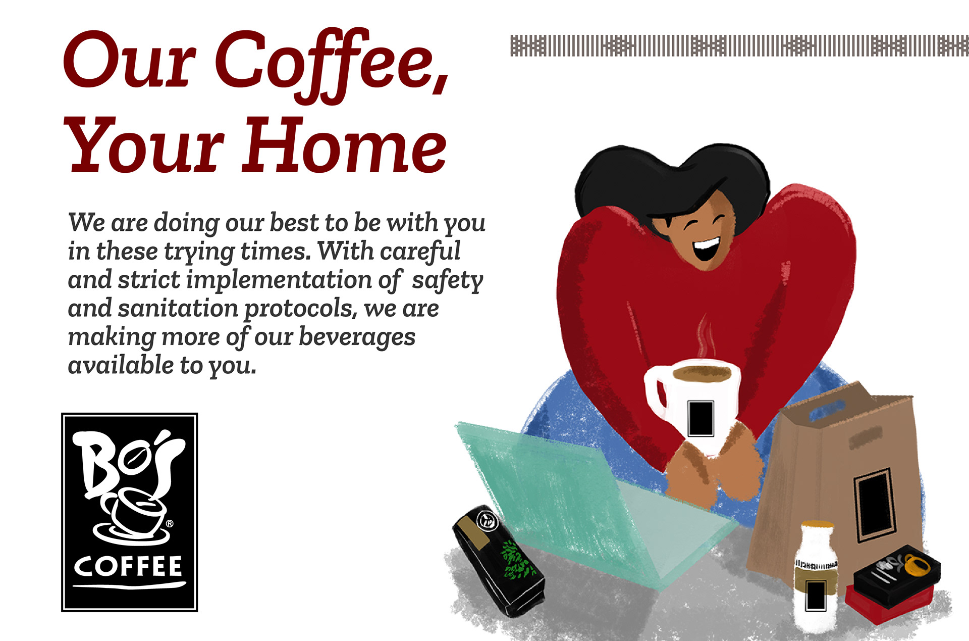 Some selected layouts and illustrations for Bo's Coffee in 2020